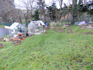 ...ready to hang out for the birds. We then made another to put out next week. We also filled the bird feeder with nuts and retrieved a seed-feeder from the undergrowth at the bottom of the hill by the fence. We couldn't find the base of it, so will have to try and fashion something to fix it!After that, we just had time to pull out a couple of the walking stick cabbages and cut off the root ball. We will dry the stalks and see if they are any good for walking sticks in future!